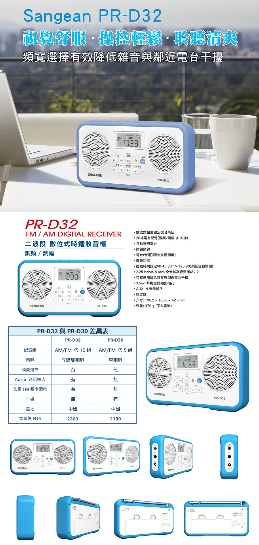 山進SANGEAN-數位收音機 (雙喇叭)/PR-D32
