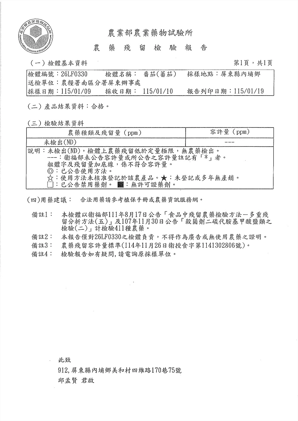 無農藥檢驗合格