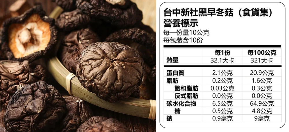 嚴選來自台中新社的黑早冬菇;「黑早」是專為製作乾香菇而培育的品種,香氣濃郁、菇傘肉質厚實,泡發後Q彈有嚼勁,適合燉湯、滷煮、炒菜等各種家常料理。