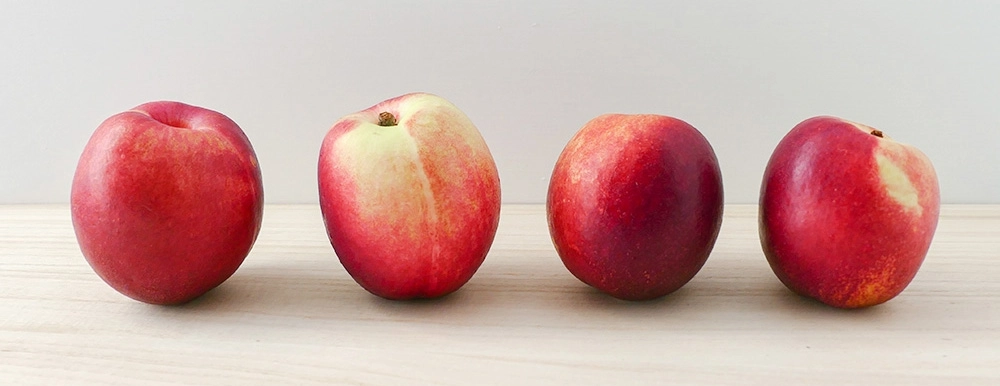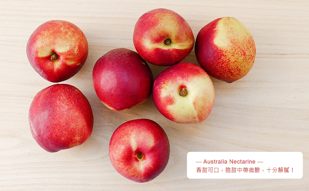 油桃口感較水蜜桃脆口、完熟時果肉Q嫩;表面光滑、無絨毛、色澤油亮,也稱為「油桃」;喜歡脆硬的口感可以直接吃,如果喜歡軟一點點的也可以放置冰箱1~2天熟成時食用唷。