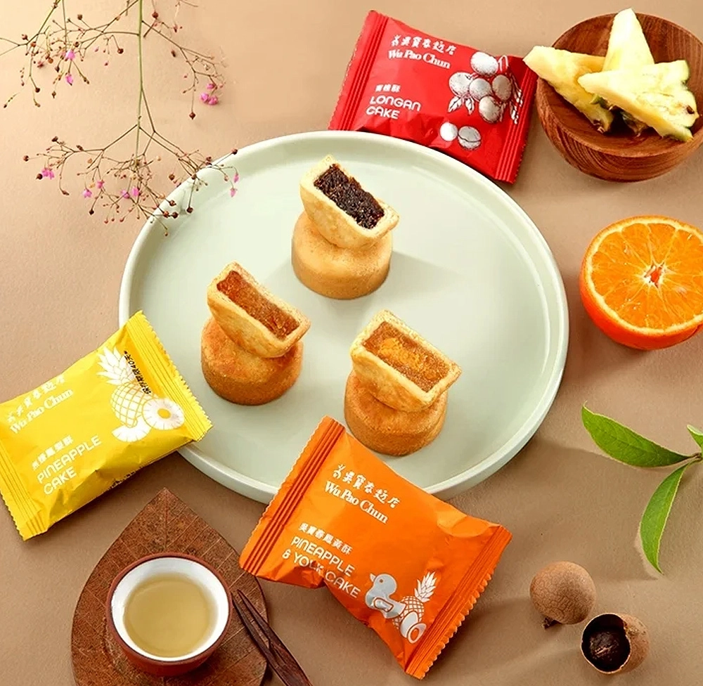 使用鳳梨餡與冬瓜餡,完美比例的調配,帶有細緻纖維,更透著金黃色澤,餅皮融入臺灣傳統鹹香滋味-鹹蛋黃,讓餅皮散發懷舊香,完美比例更添層次。