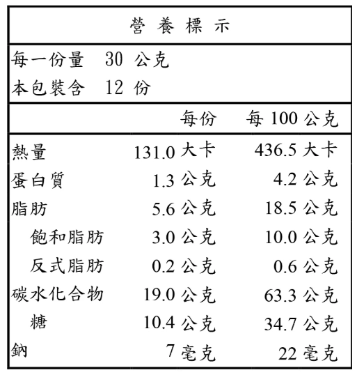 無嫌鳳梨酥:每份 30 公克,本包裝含 12 份
