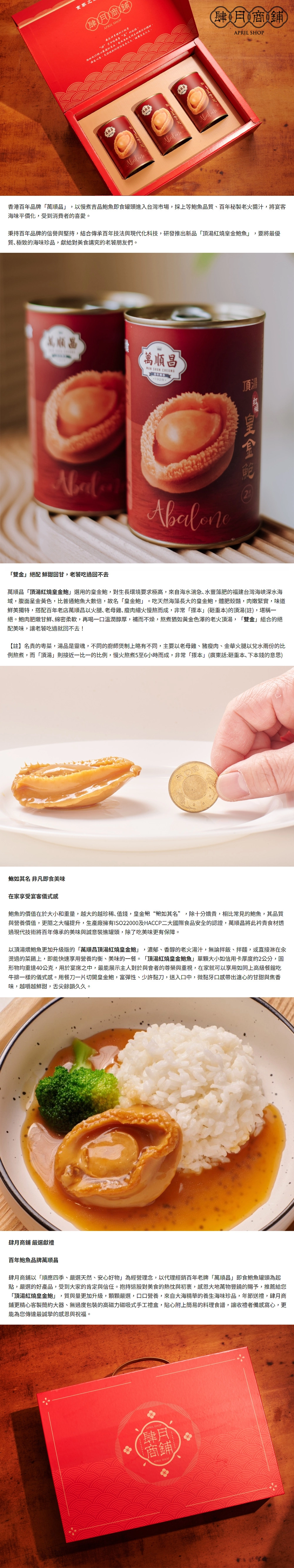 萬順昌-頂湯紅燒皇金鮑魚/禮盒 (3入)