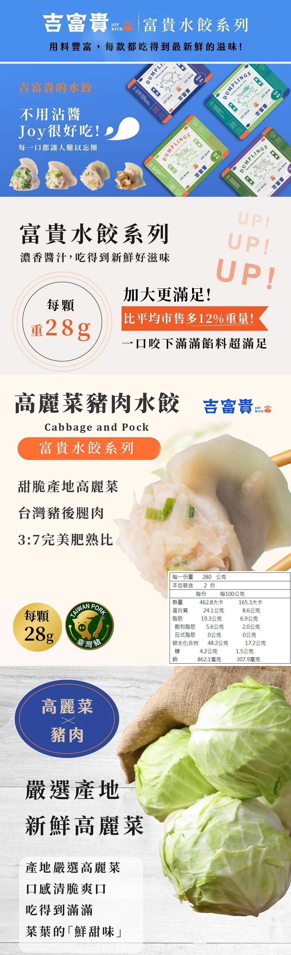 吉富貴-水餃/5入組 (高麗菜豬肉+韭菜豬肉+香蔥豬肉+剝皮辣椒豬肉+猴頭菇鮮蔬)