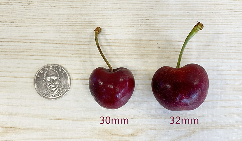 智利櫻桃的尺寸單位與美國櫻桃不同,會使用不同的代稱,馥果精選大顆及特大顆尺寸櫻桃,吃起來口感爽脆!