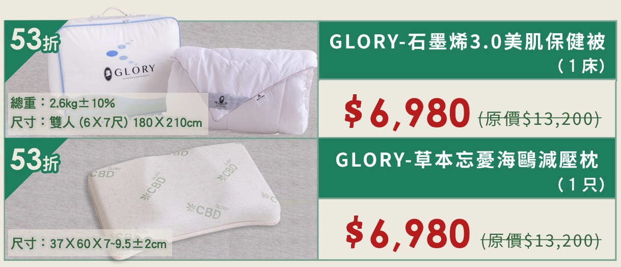 【11/21開賣】上品寢具床墊館-GLORY石墨烯3.0美肌保健被、海鷗減壓枕↘53折起
