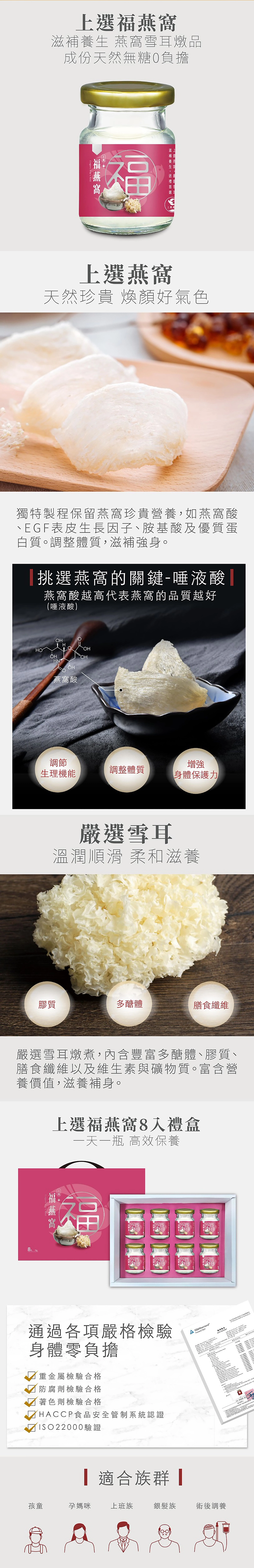 嚴選上等燕窩與優質雪耳,以無糖配方呈現最純粹的滋補飲品,全程零防腐劑、零著色劑、零重金屬,並通過多項嚴格檢驗,安心看得見。