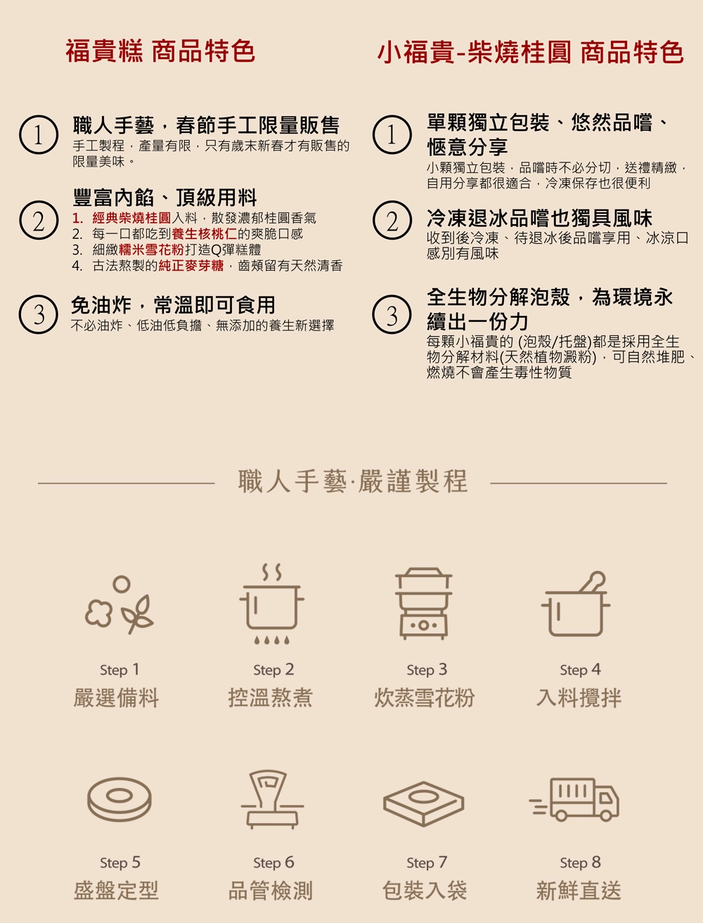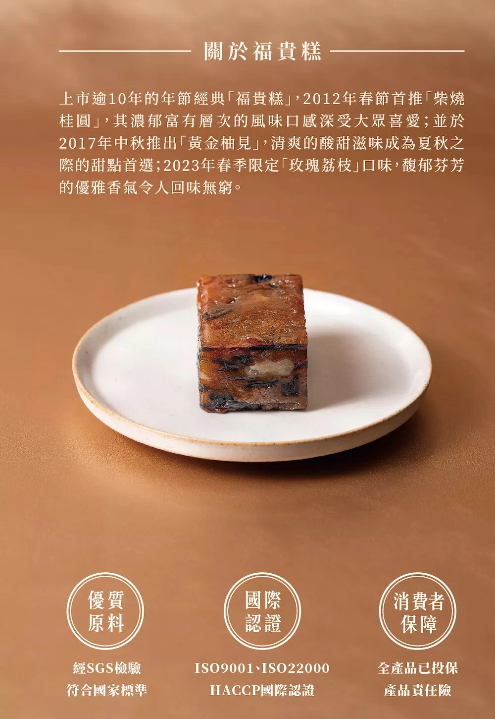 ❷ 福貴糕為當天新鮮製作,採預購制。下訂後預計3-5個工作天陸續出貨;恕無法指定到貨日期,週日 、週一宅配無法到貨,敬請見諒。