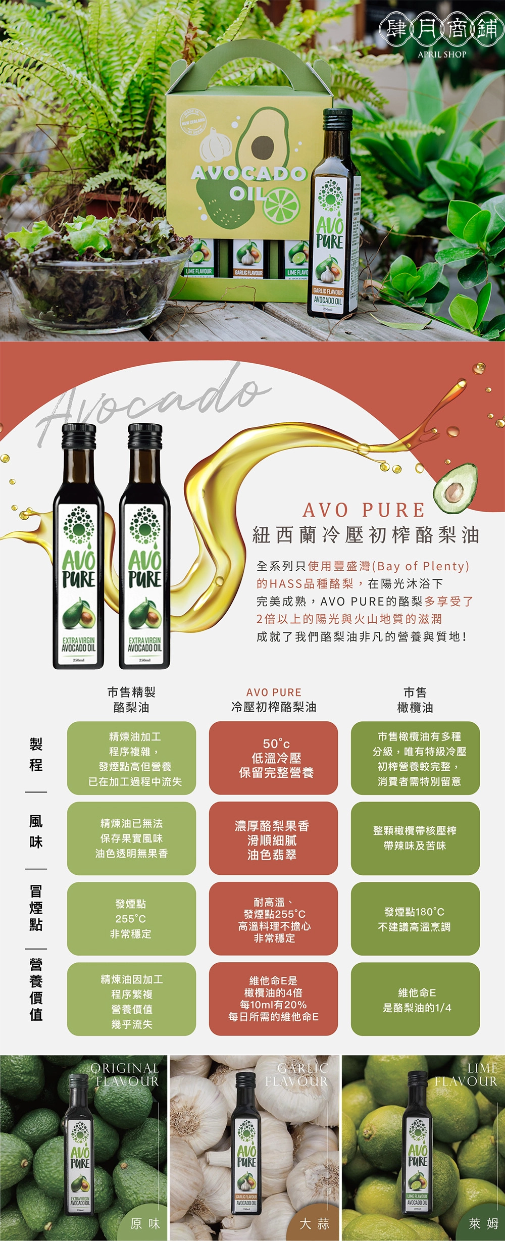 肆月商鋪-AVO-Pure特級冷壓初榨酪梨油/禮盒 (3瓶)