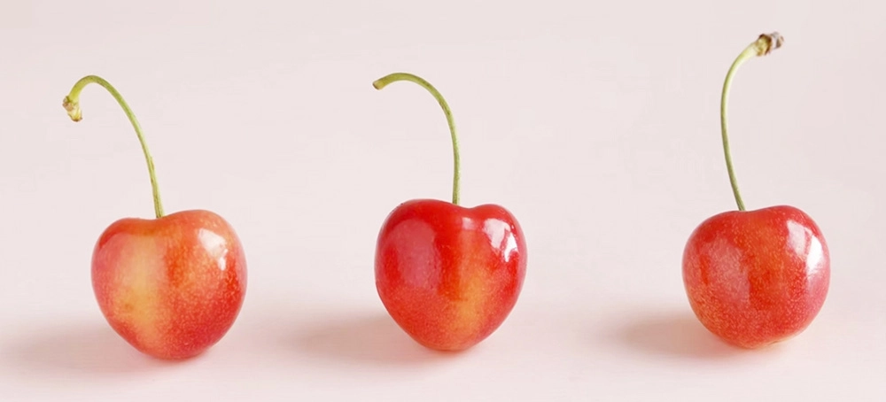 白櫻桃的果皮薄,呈現粉紅色帶點鵝黃色的果斑,甜度可高達 20 – 25 度,是所有櫻桃中最甜的品種。