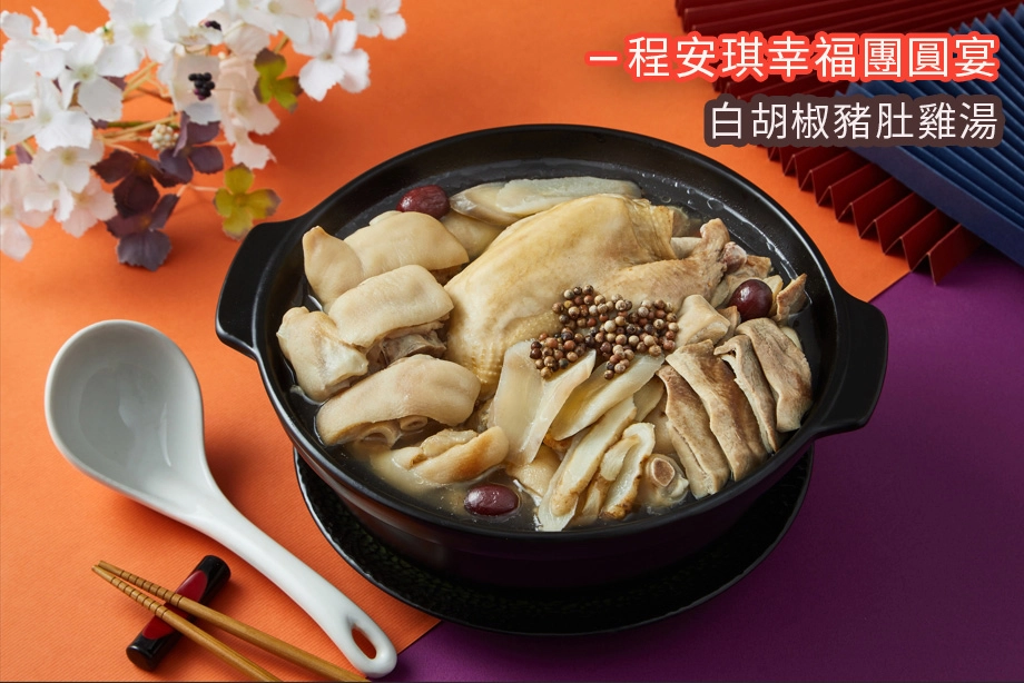 白胡椒豬肚雞湯:嚴選雞隻與豬肚、藥膳食材慢熬,白胡椒香氣濃郁、鮮雞肉嫩、豬肚彈牙,湯頭濃醇香辣,暖胃又滋補。