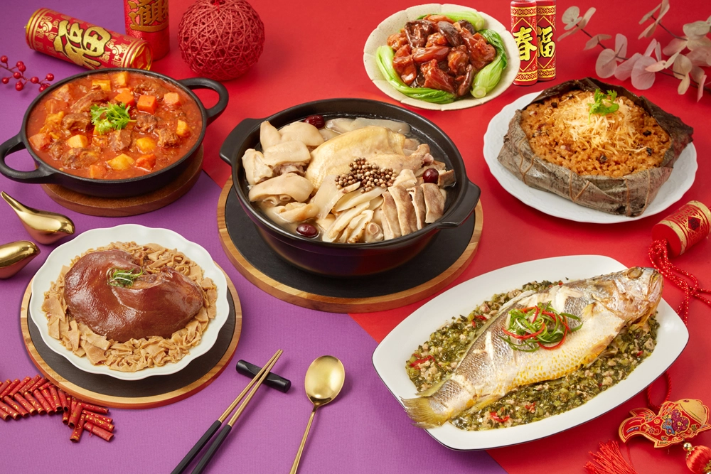 歐式風味牛肋條入口柔嫩、醬汁香醇;滬派經典虎掌Q彈軟糯、膠質滿滿;再搭配臘腸肝腸的荷葉糯米飯,吸滿雞湯與海味香氣,口口飽滿;6道佳餚道道精彩、色香味俱全,為團圓餐桌帶來滿滿儀式感與幸福年味。