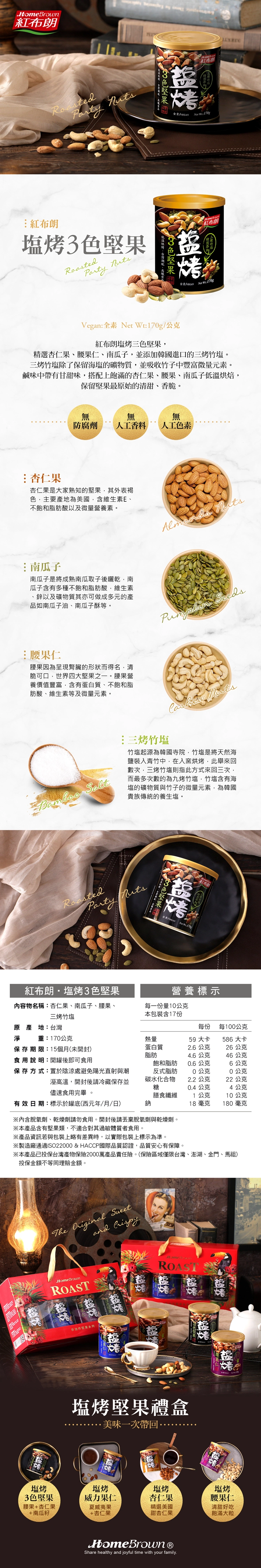 紅布朗嚴選優質堅果原料,由通過 HACCP 與 ISO22000 認證的專業工廠製造,堅持新鮮製程與品質把關,讓您吃得到原始風味、豐富營養,每一口都安心、不變質。