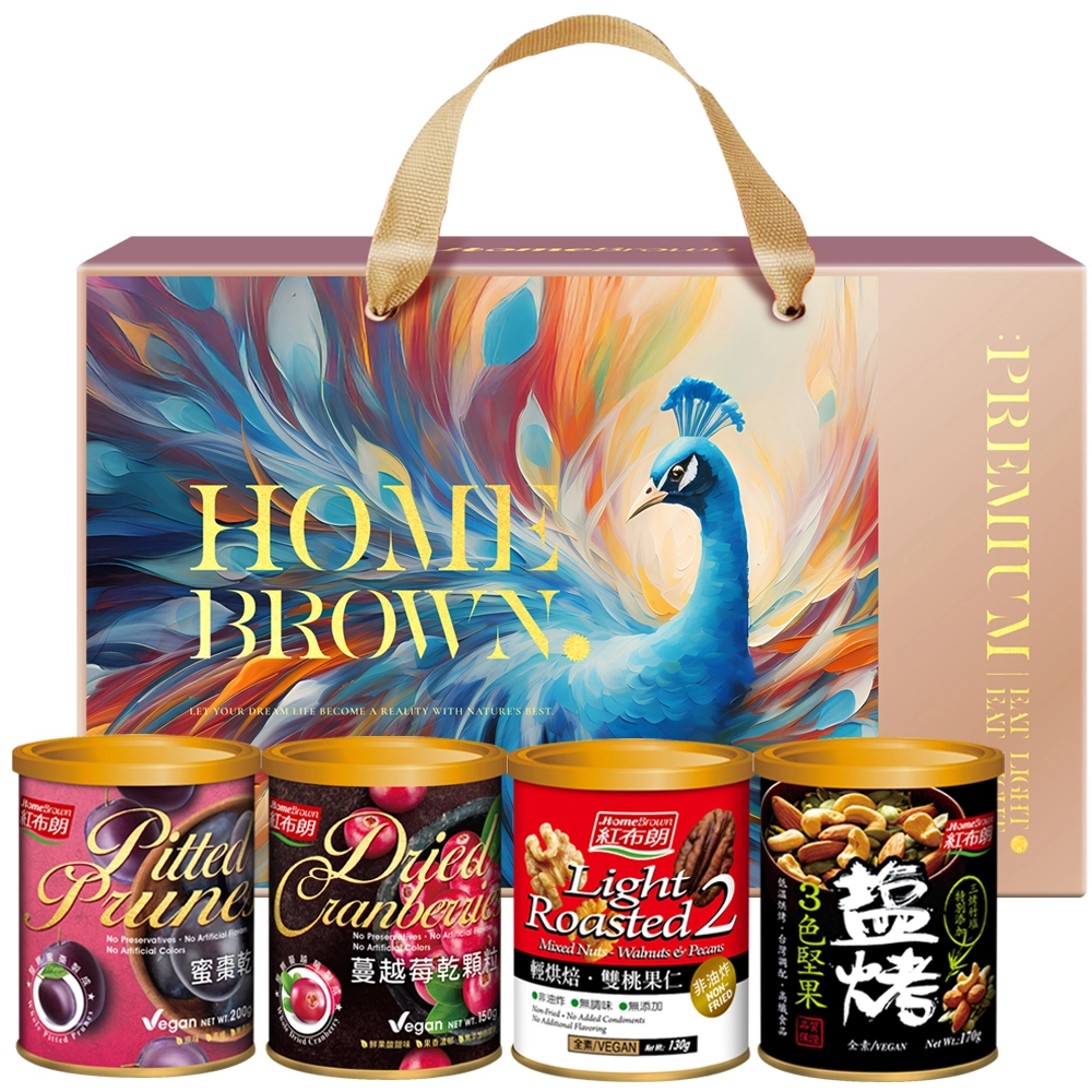 紅布朗-心意滿分堅果果乾禮盒 (蜜棗乾+輕烘焙雙桃果仁+蔓越莓乾顆粒+鹽烤3色堅果)