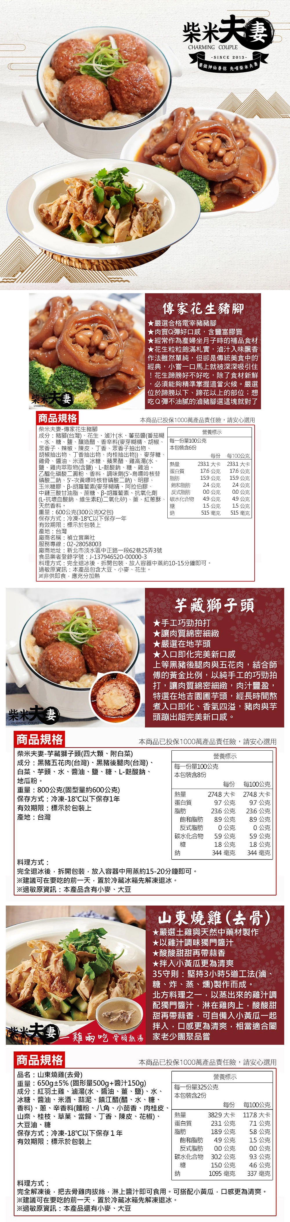 柴米夫妻-好運旺來 (花生豬腳+芋藏獅子頭+山東燒雞)/3菜組