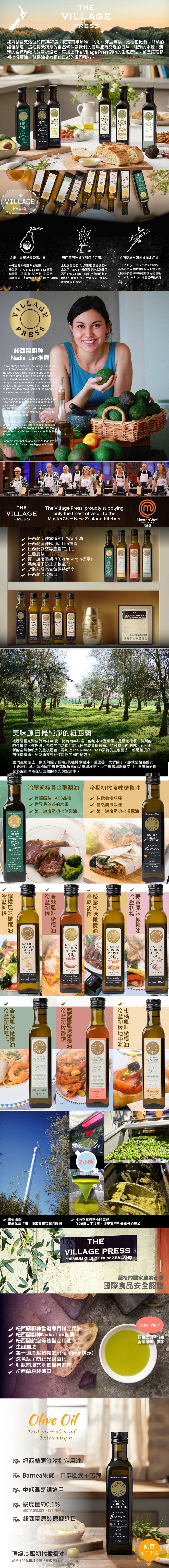 第一道冷壓初榨橄欖油,保留最純粹的自然風味,紐西蘭原瓶進口,品質安心看得見;紐西蘭廚藝節目指定用油,紐西蘭航空頭等艙御用選擇,日本樂天銷售三冠王,五種風味任選2瓶,一次滿足料理的多種想像。