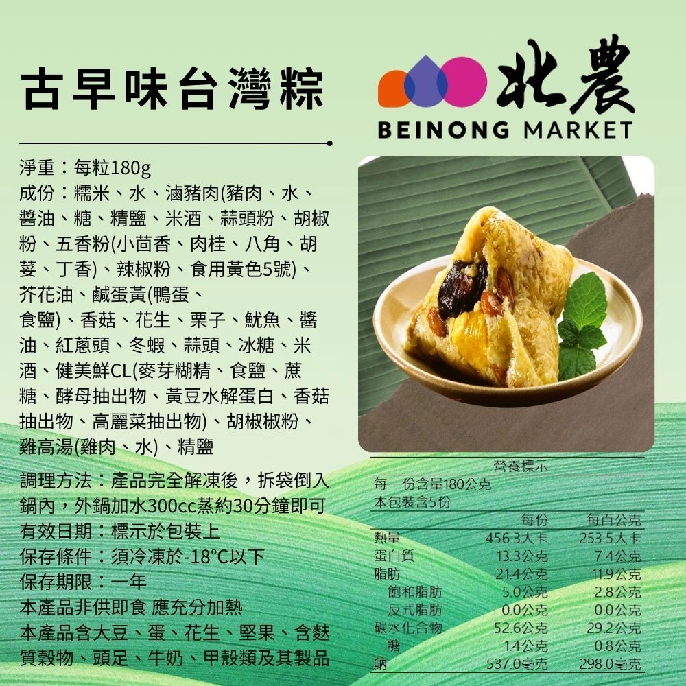 古早味粽:古早味北部粽,嚴選長糯米搭配豬五花、栗子、香菇等山珍海味,粽香濃郁、口感紮實。遵循傳統工法製作,經典風味重現,端午必吃,輕鬆享受道地節慶美味。