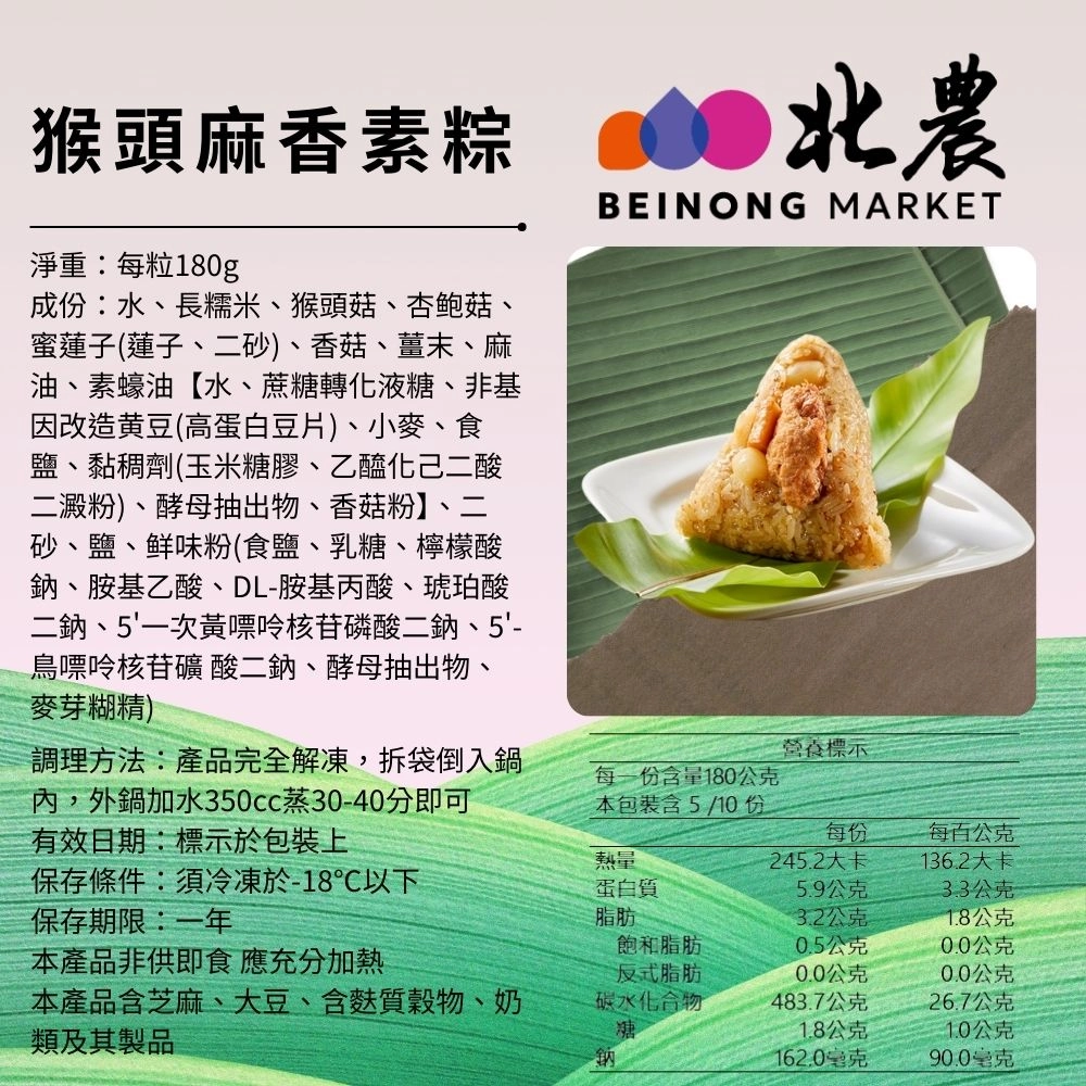 ❷ 麻香猴菇素粽:本產品含有大豆、小麥、蛋類、花生、芝麻及其製品。
