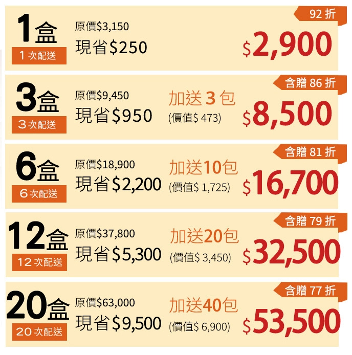3盒以上: 訂購並完成訂單確認者,將於出貨前進行電話聯繫確認,出貨時間約為 7 個工作天左右寄出。