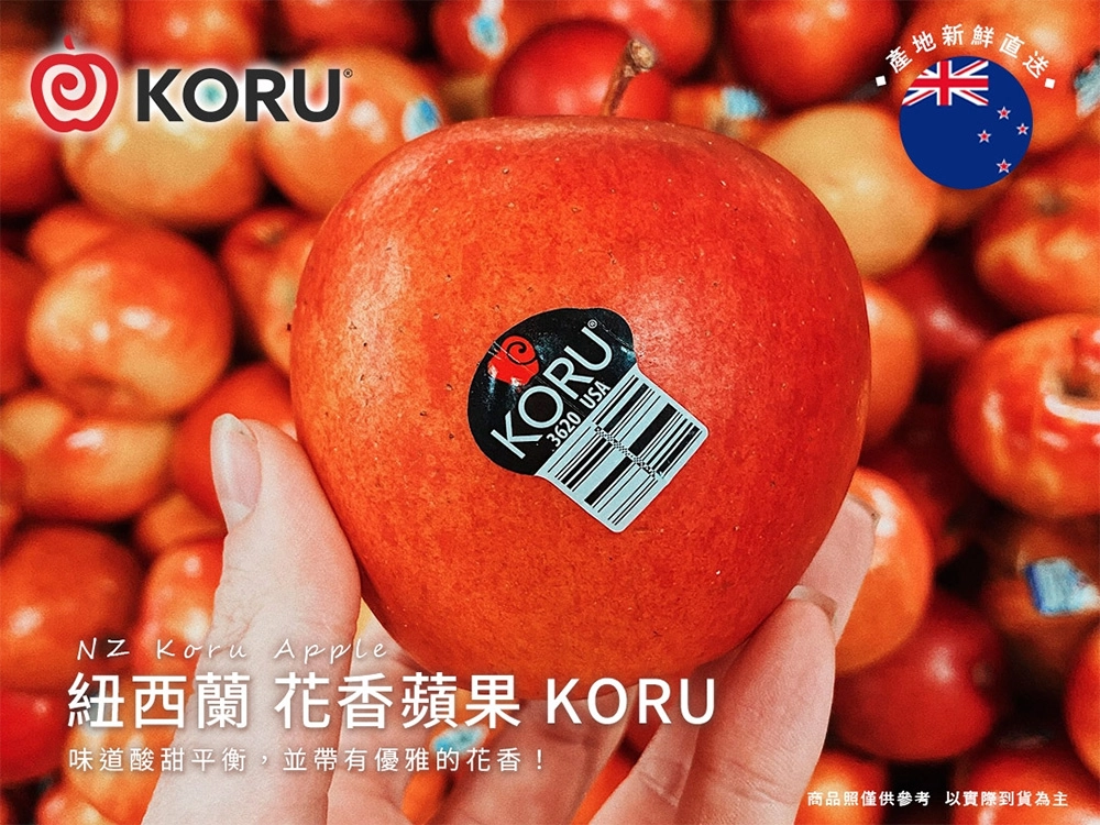 紐西蘭花香蘋果 KORU夏日清新首選,酸甜平衡、口感爽脆,入口綻放優雅花香,清新解膩、沁涼宜人;生長於純淨無汙染的紐西蘭,得天獨厚的氣候條件,充足日照與適量降雨,加上純淨水源滋養,孕育出風味出眾、品質卓越的蘋果。
